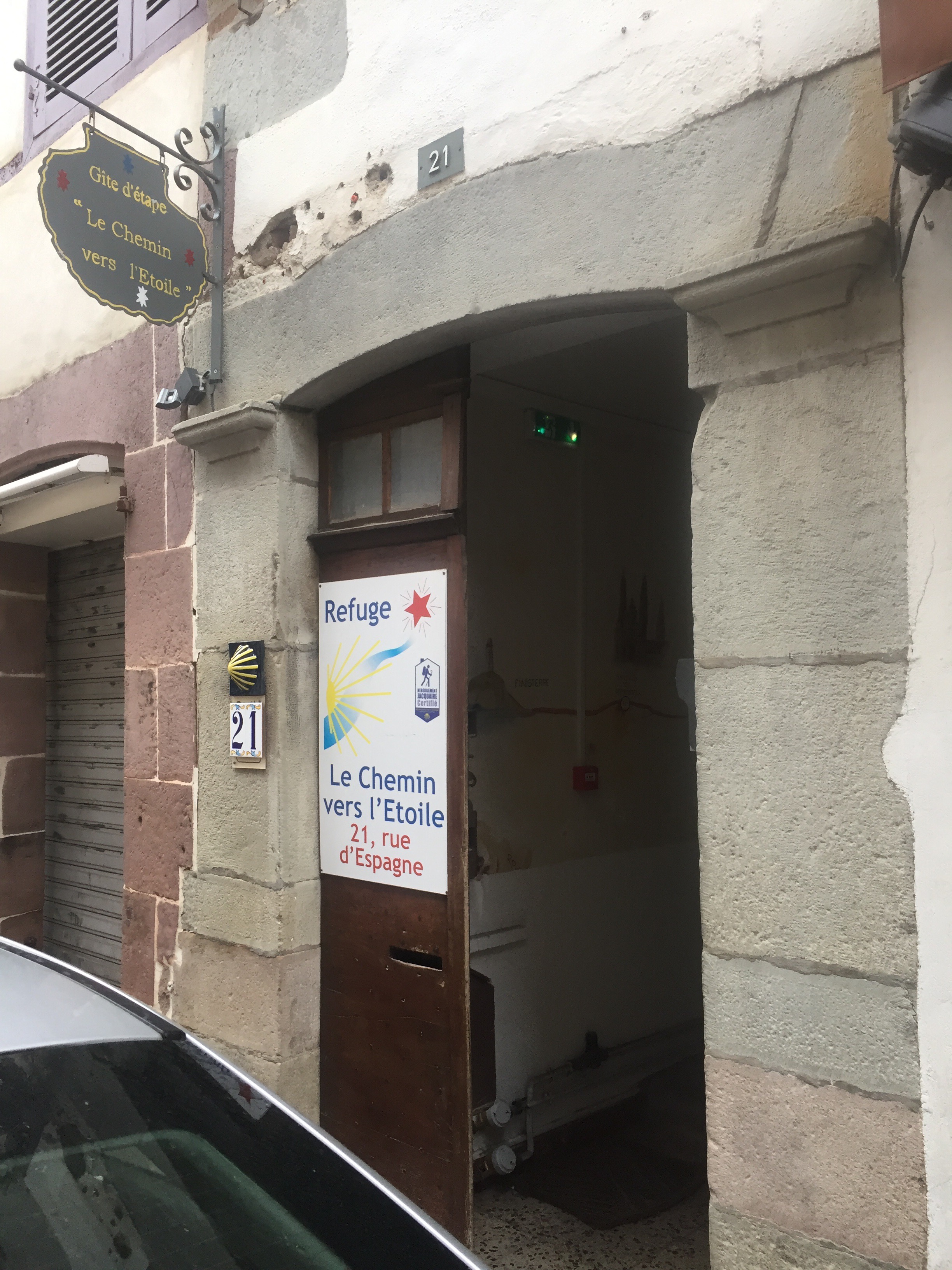 Our train arrived in Bayonne, France around 5:30 pm. Being Easter Monday, a holiday in France, there was no evening bus service to St. Jean Pied-de-Port. An employee at the Bayonne terminal helped us find a cab. She arranged for the driver to take 5 of us to St. Jean for $20 euros each. We loaded our backpacks and jumped in the cab for the 1-1/2 hour ride. I gathered the money from everyone and offered it to the cab driver but he said no. So I held on to it. Here’s where the fun began. It reminded me of the drivers in Honduras — good drivers but very fast and scary. We were entering the mountains and there were several times it felt like a head-on collision was coming. The German guy sitting behind me kept squealing and it wasn’t with delight. The poor woman from Arizona in the far back seat kept pleading, “slow down, you’re making me sick.” The cab driver didn’t speak English so away we went. When we arrived, I handed him the 100 euros. He counted it and a few minutes later came back at us and was apparently unhappy. I don’t speak much Spanish but from what I could understand, his meter read 136 euros. The others responded that it was a pre-arranged price and that is all we are paying. He was angry and began harassing each of us as we walked away. To appease him, Terry and I offered him another $15 euro. He wouldn’t take it — he wanted 36. We just kept walking. He followed us. I did hear the word Gendarme, so I think he was threatening to call the police. He was in my face barking out Spanish. I just shook my head and said I don’t understand. He followed us to the Camino Pilgrim’s office stated his case to them. Not sure what they said to him, but he left, never to be seen again,. Whew!