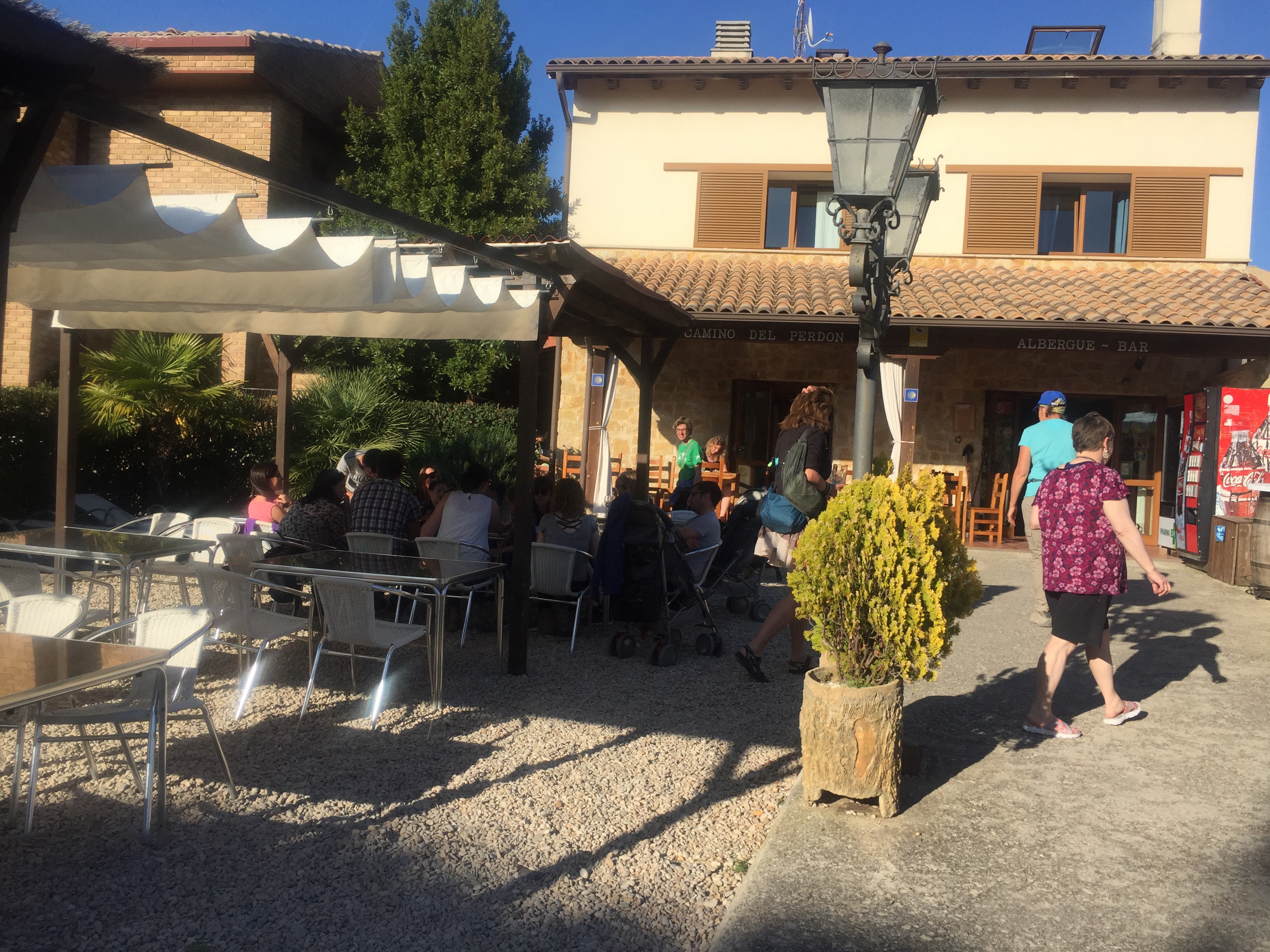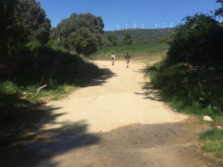 Going downhill was quite treacherous. It was steep and rocky. Many injuries happen on this hill. We ended the day at the next village which was so small but welcoming. They had a lovely outdoor patio. We grabbed a couple beds, did laundry and sat outside and drank beer. We were delighted to see our friend Marina from Southern England. She saw us drinking beer and couldn’t pass it up. She stayed for the night too.