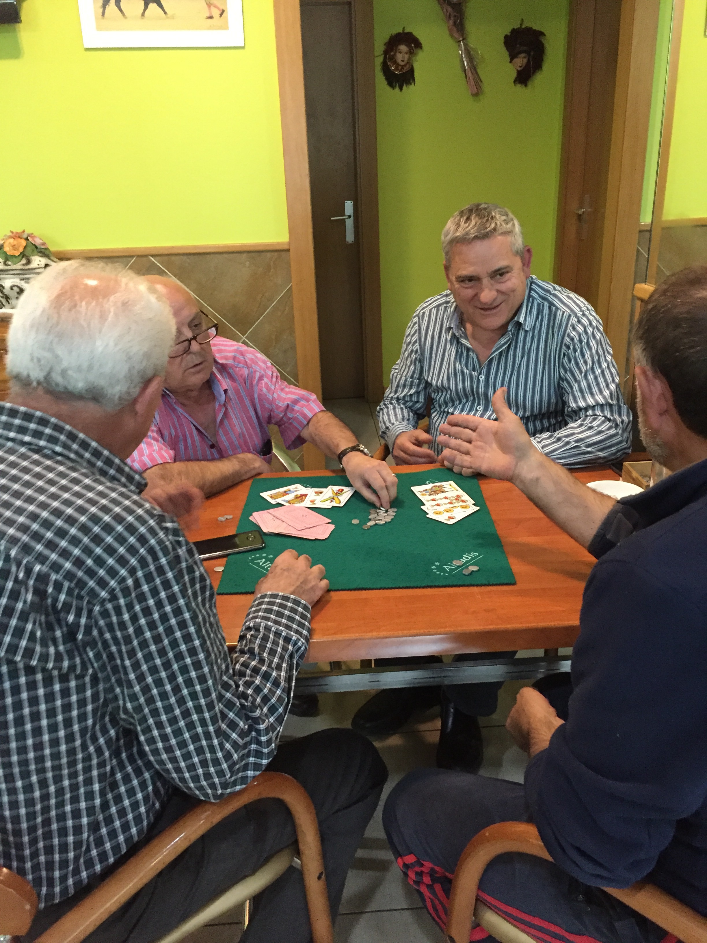We ate dinner at a nearby place. Many people were playing this game. We haven’t figured out what it is yet.