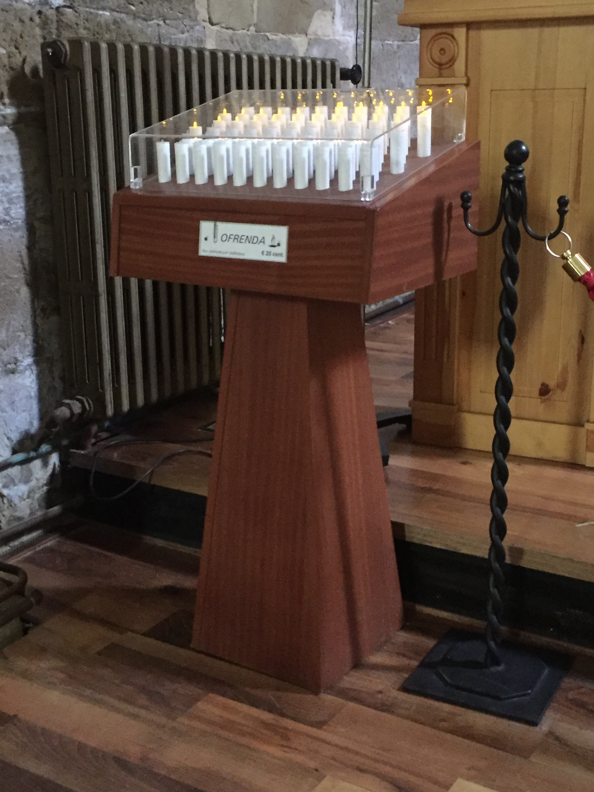 Many of the churches in Spain have replaced vigil candles with the electronic version. Probably a lot less maintenance involved but there’s a lack of sacredness. Too electric, not natural.