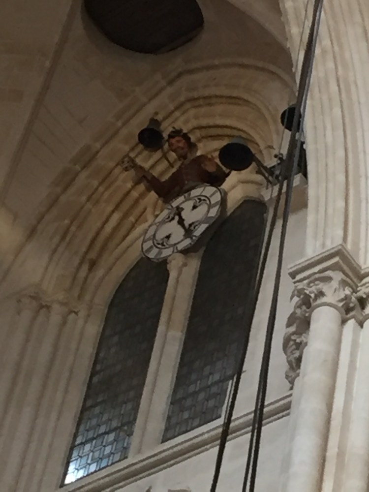 The papamoscas, which is the “fly catcher” clock. His mouth opens and closes as he tells time. Not sure why an ostentatious church would have this goofy thing above a clock.