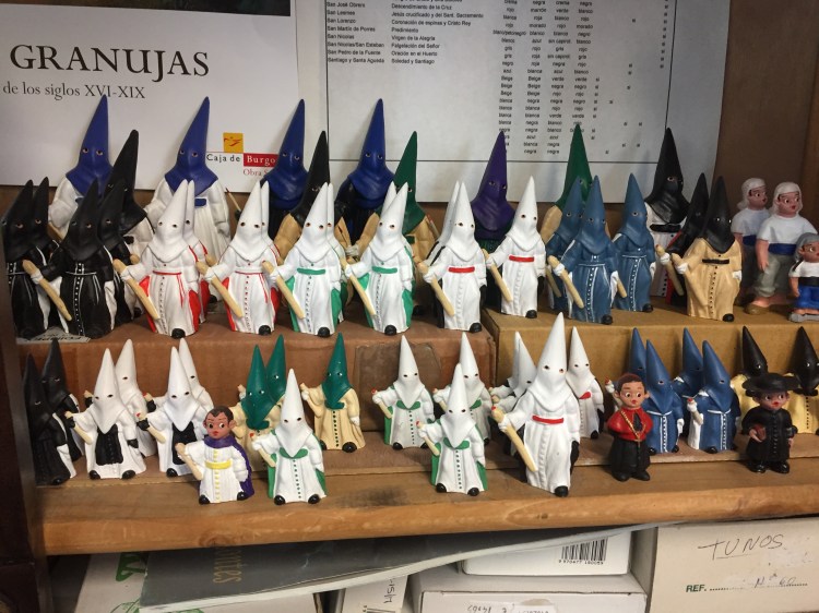 These are not KKK figures, they are penitents. Usually during Lenten processions there are individuals who repent by parading around in such attire.