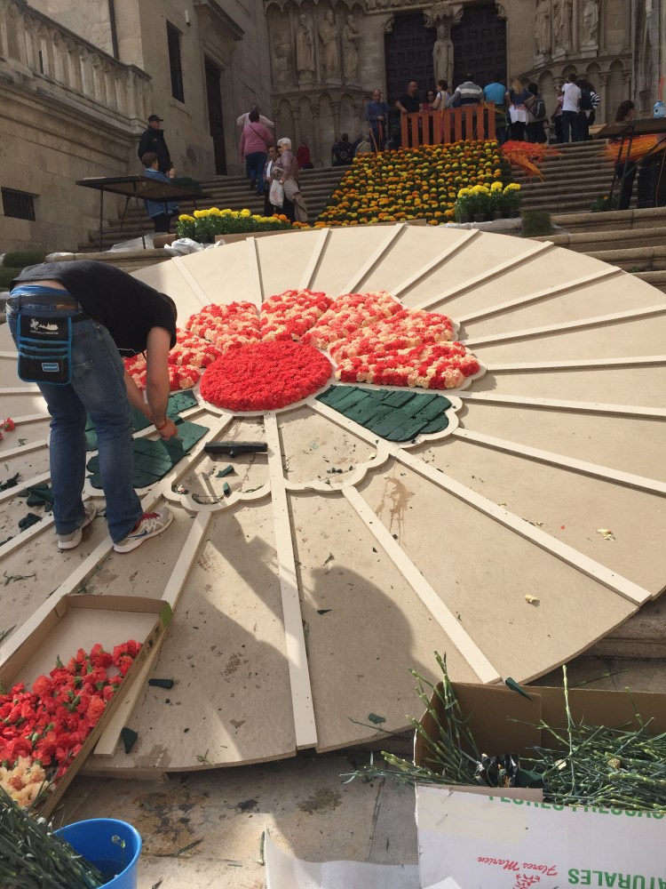 These people came from Toledo to create a flower display at the Cathedral that emulates the rose window from Notre Dame in Paris. We watched them work and it was impressive. They used live cut flowers.