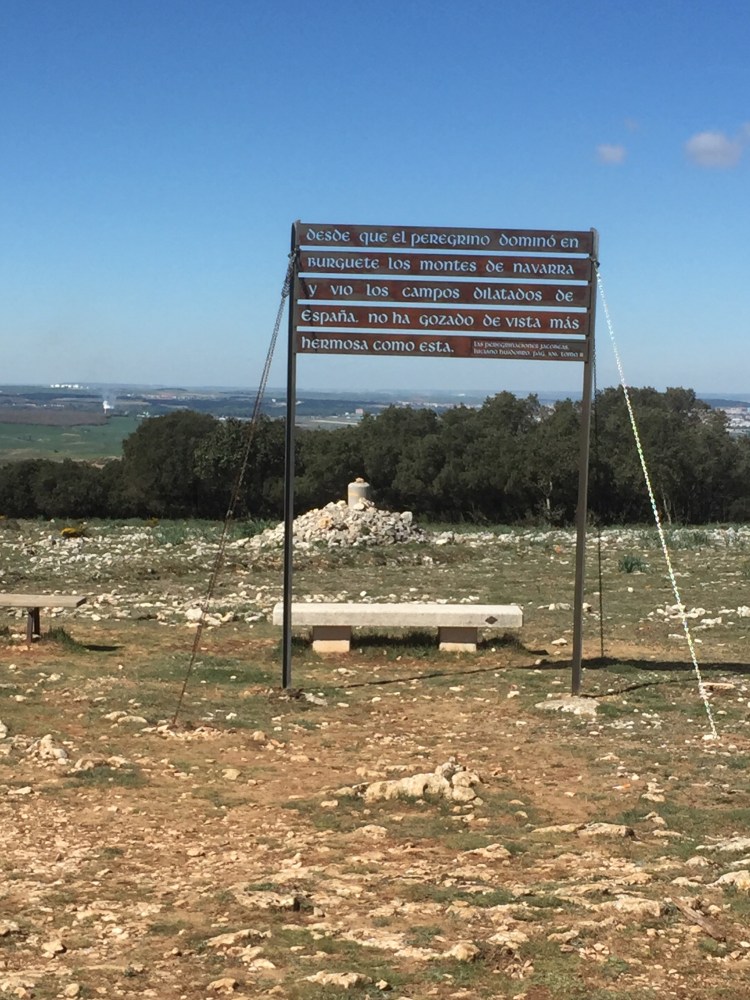 A resting area. The sign reads something like, Since the Pilgrim has mastered the mountains of Navarre in Burguete and saw the fields of Spain he has not seen a more beautiful sight as this.