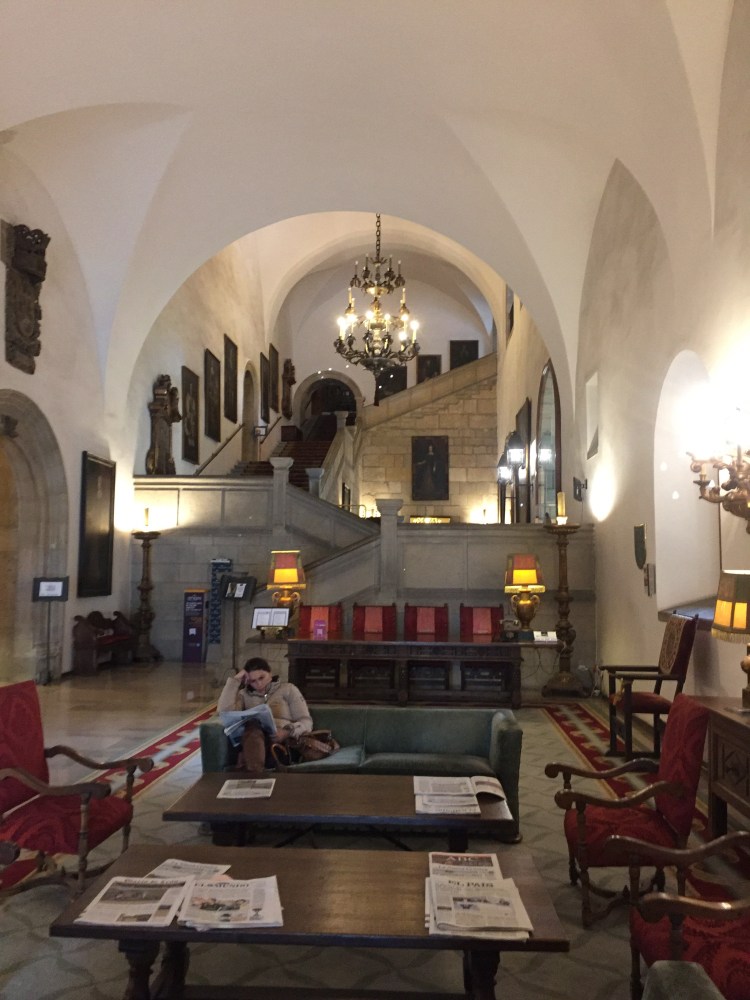 This is the hotel lobby of the Monestary of San Marcos. It was featured in the movie “The Way”. The Martin Sheen character treats his Camino friends to a night at the Parador.
