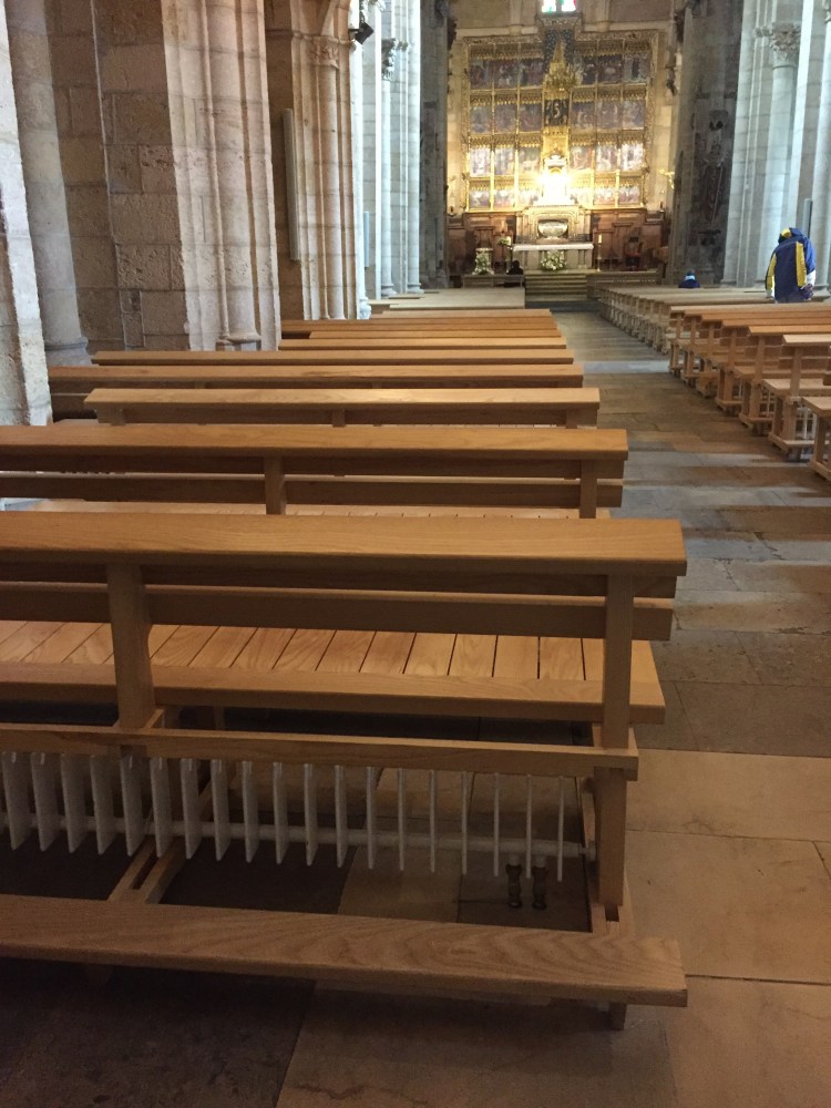 New pews AND each pew had a heater under it. These old stone churches can be really cold.