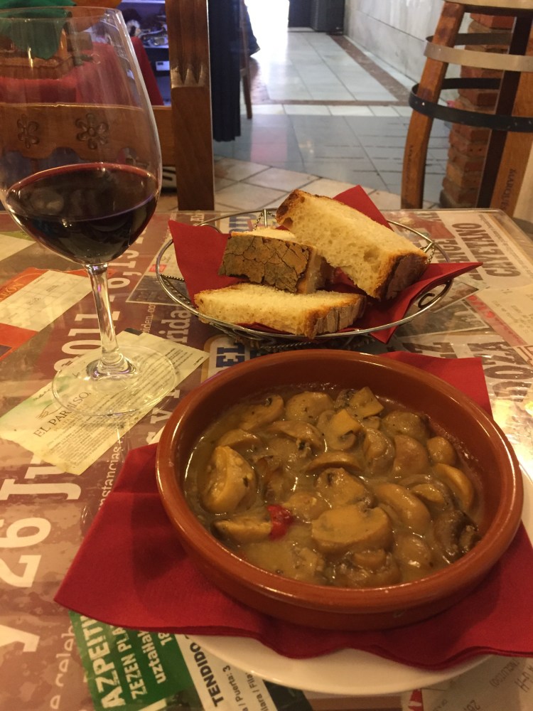 Perfect lunch … a bowl of mushrooms! (David hates mushrooms.) There we’re two crocks with unidentifiable contents which I later discovered were “frog haunches” and “gizzards”. So glad I went with mushrooms.