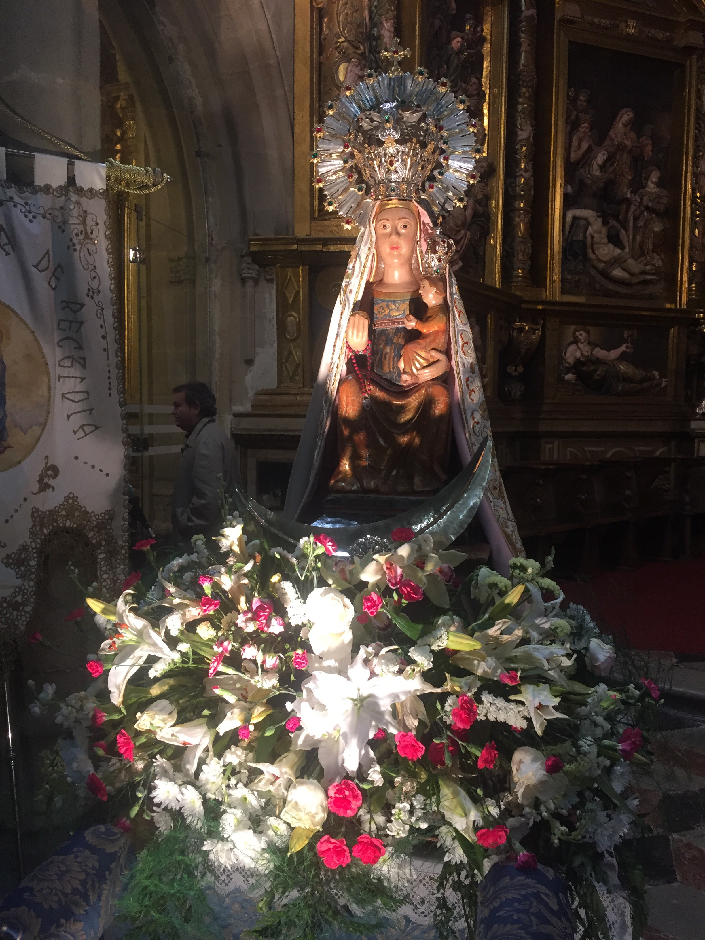 It was about noon (on a Friday) and we were surprised to see a service taking place at the Cathedral. There were about 15 priests, bishops, monseigeurs presiding and a large number of locals attending. We figured out that it was the feast day of Santa Maria del Castro, their patron saint. After the service the presiders left and the congregation lined up to walk by the decorated statue and pay their respects. I was hoping they would parade through the town with the statue of Santa Maria but it became obvious that that was not going to happen.