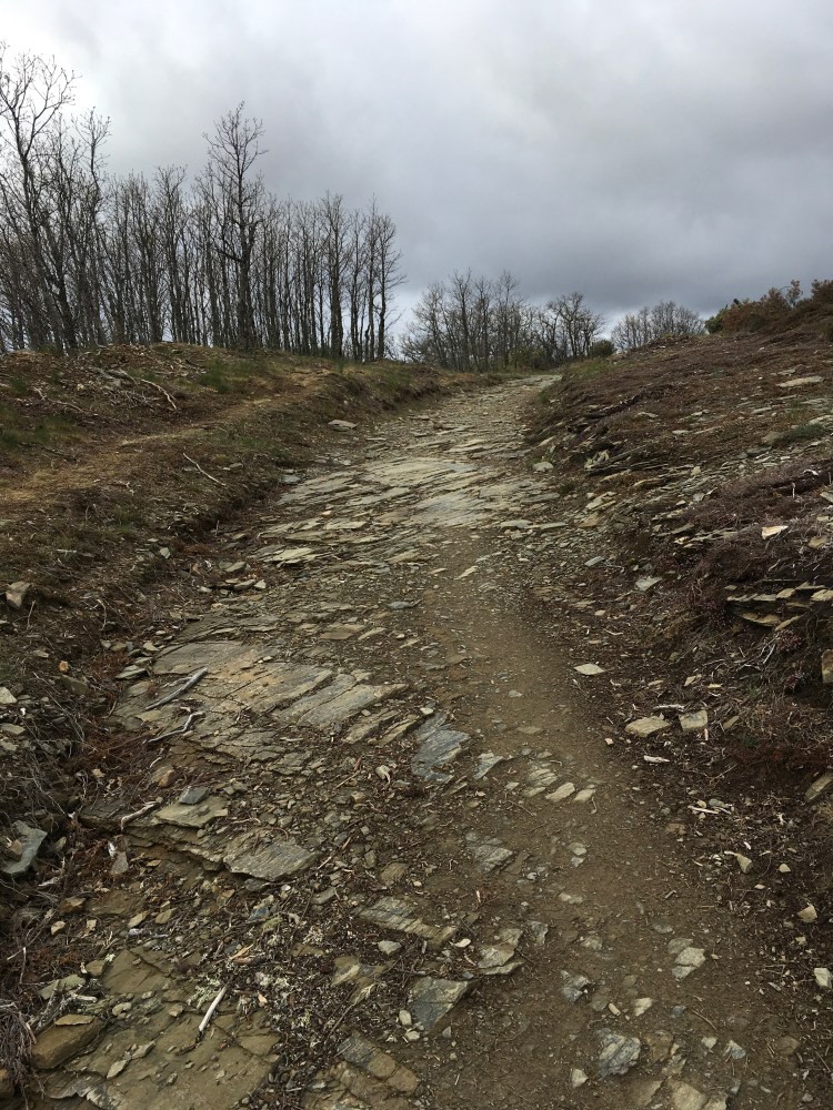 It’s a rugged road today. We are walking to Cruz de Ferro, one of the highest points on the Camino.
