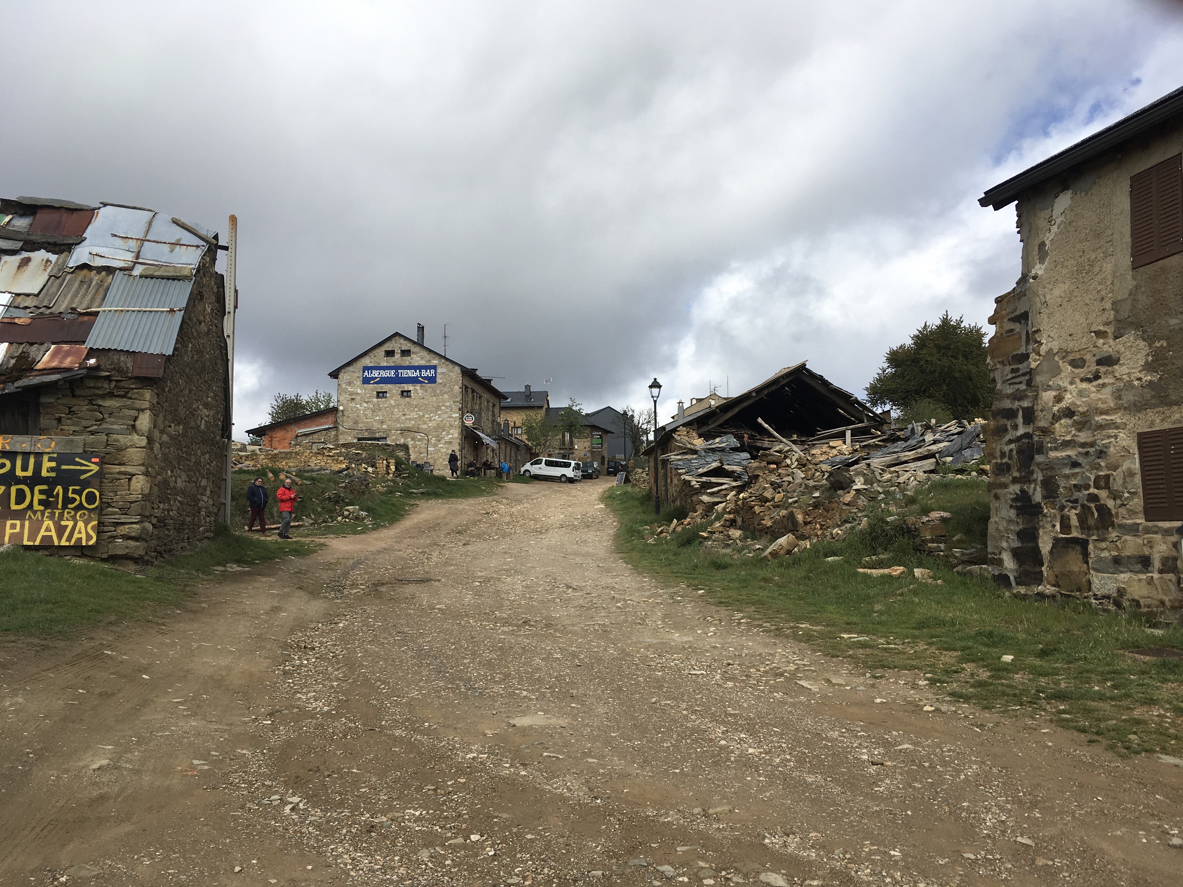 Foncebadon is in the mountains at about 4700 ft. We liked the energy here … kind of hippie central. It has been influenced by the Maragato culture which was derived from Berber tribes in Morocco. The building style is stones with wooden balconies. The ruins are many centuries old.