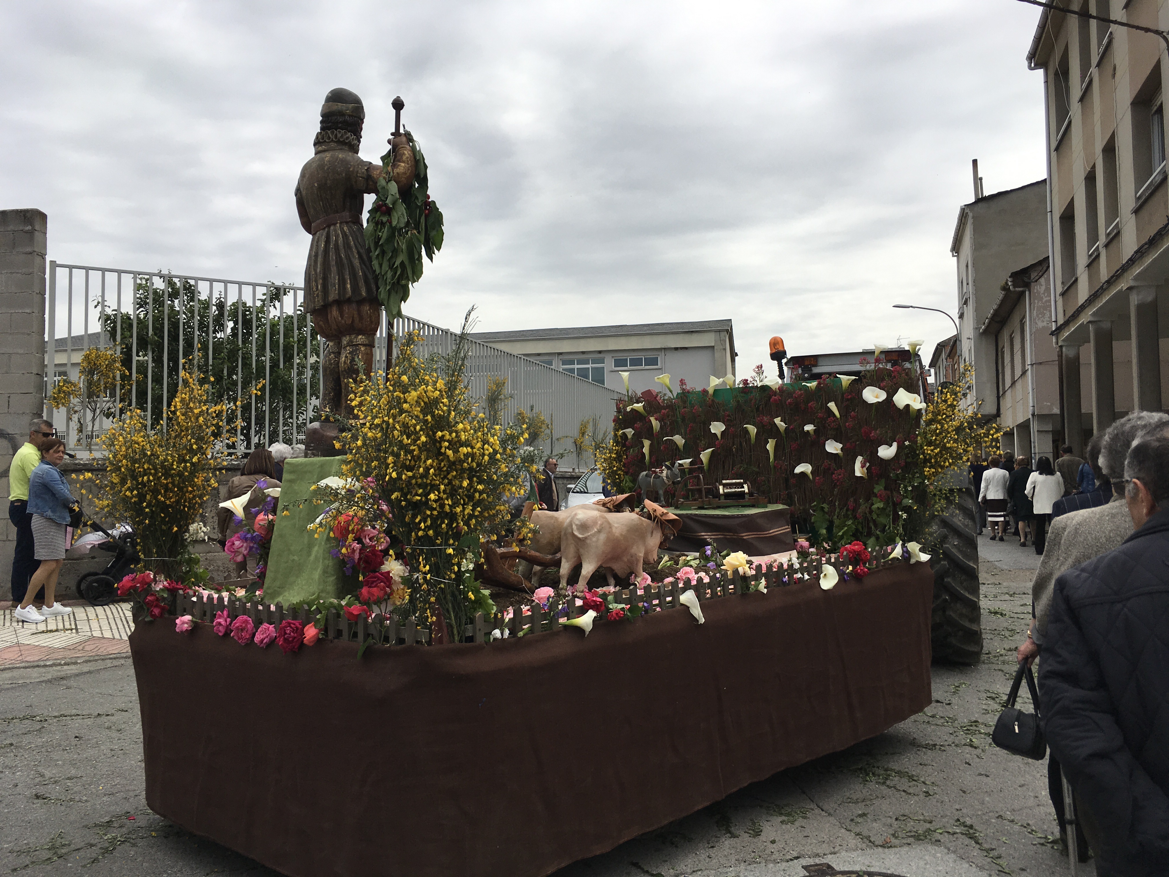 It’s the feast of Santo Isidoro who apparently is the patron Saint of agriculture in the Cacabelos community. His parade float was decorated with a field of growing plants, a pair of oxen and a little mechanical donkey spinning around an olive press. Beautiful calla lilies, flowers and cherry branches.