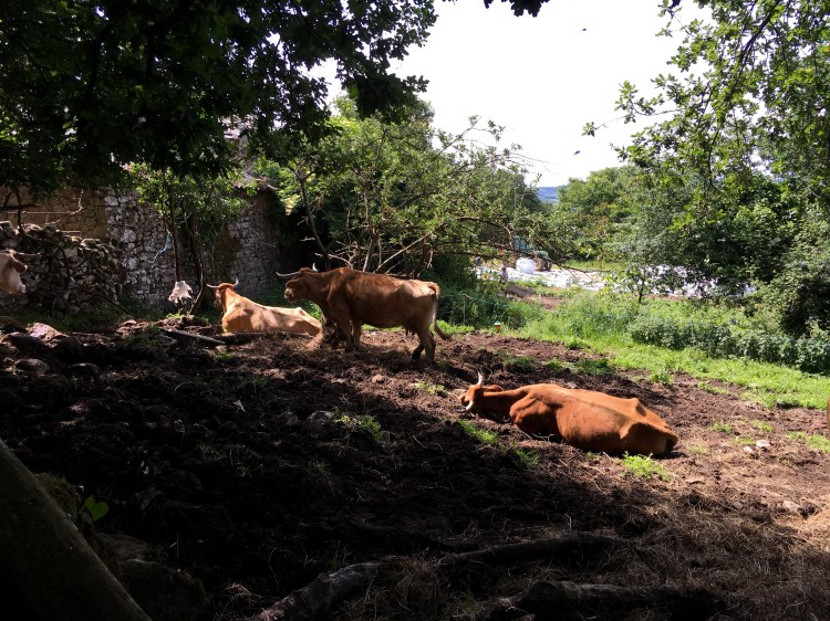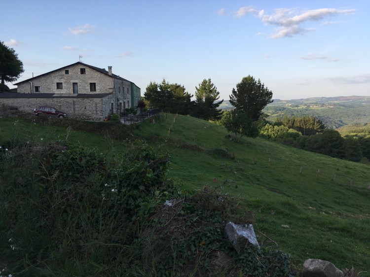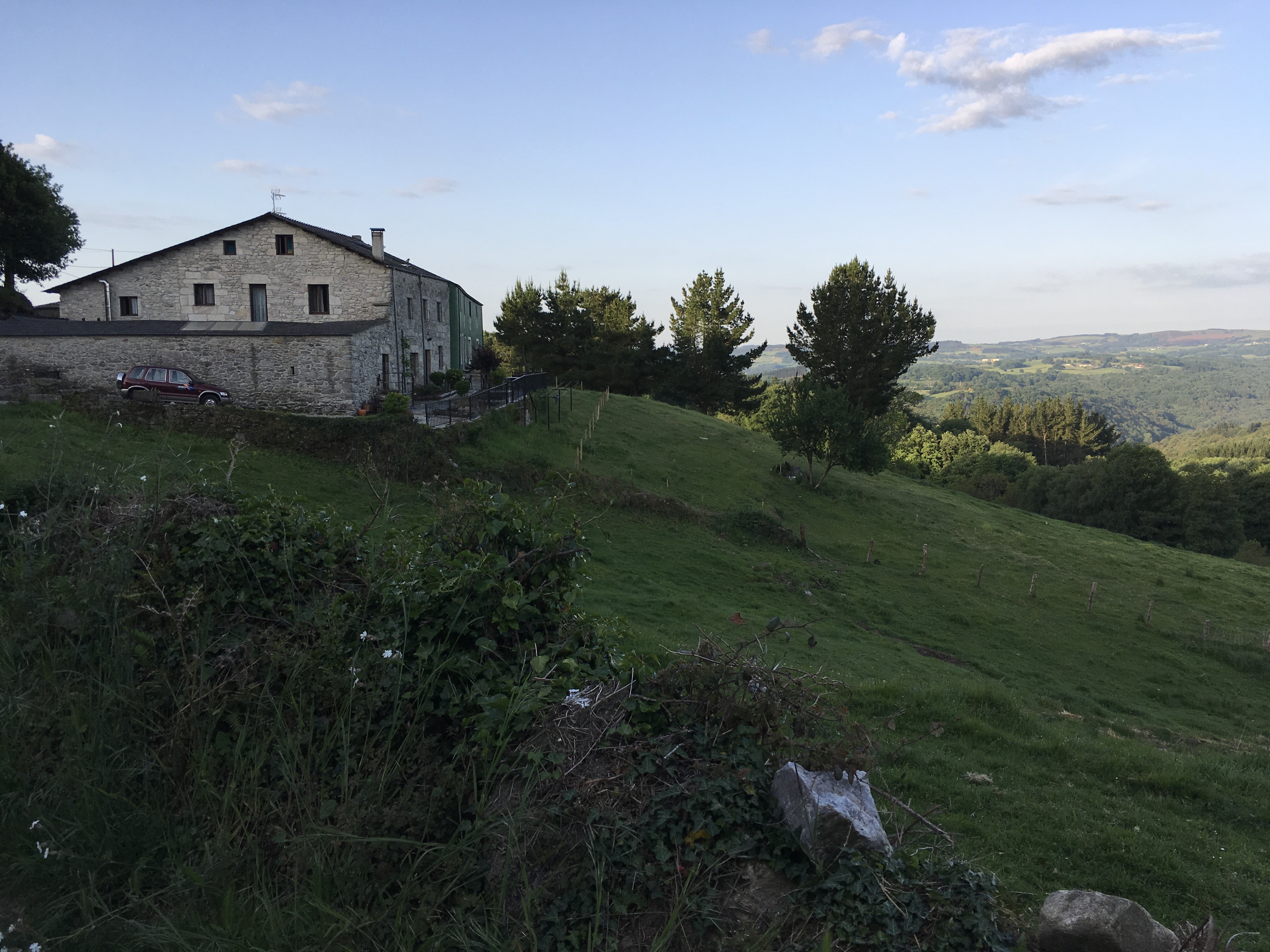 This is a view of the Morgade Albergue, it has the most spectacular view from the back patio. Nearby, the cows graze.