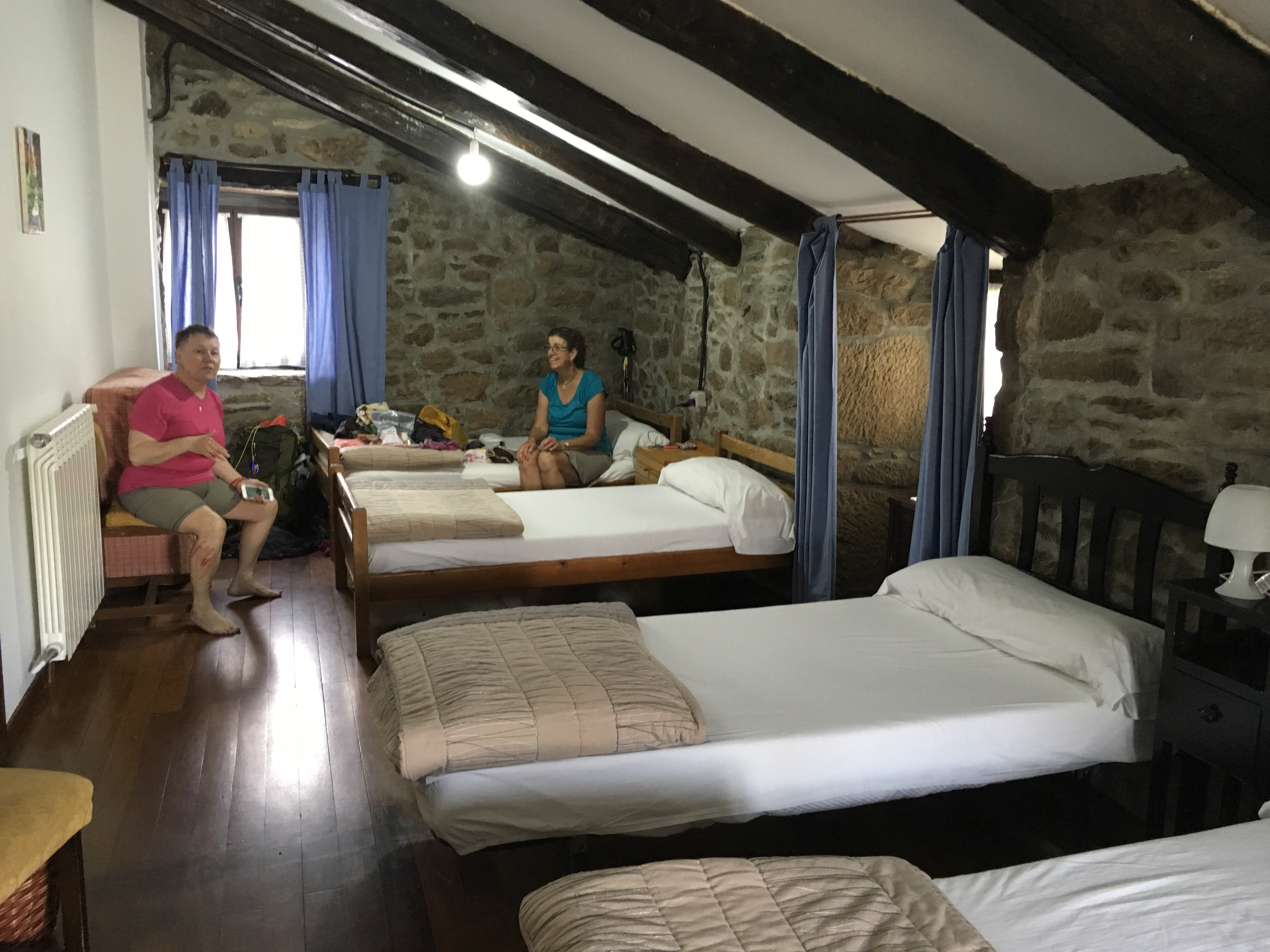 We loved this place. We shared this dorm with 4 other women. Yay…. no bunk beds. We met two delightful, very tall women from Mexico City, Mexico. Laura is an executive with Ford Motor, Madrid who is accompanying her 80-year-old mother, Lupe (aka Guadalupe). This is Lupe’s dream to walk the Camino. They are both very sweet people who speak very good English.