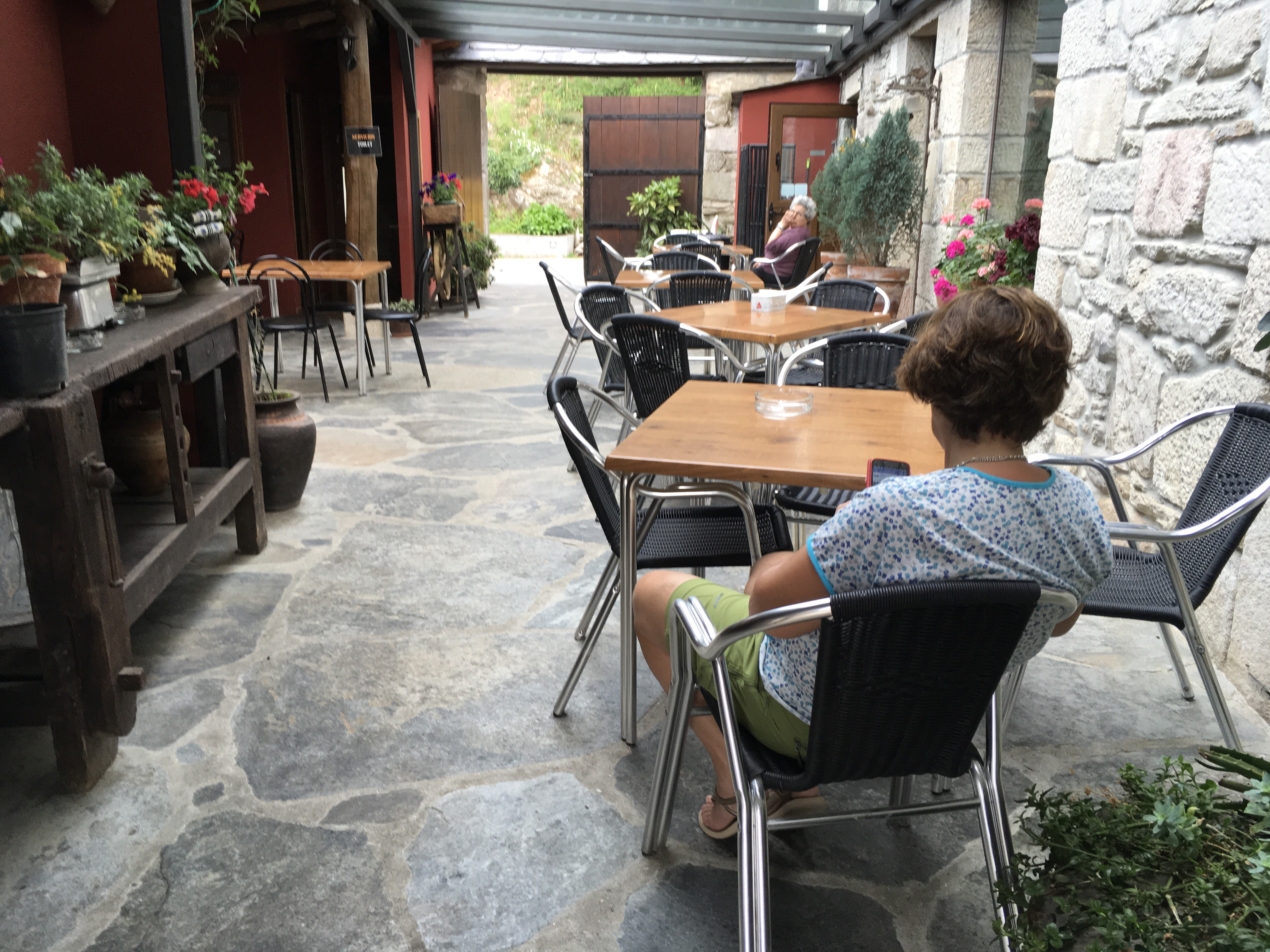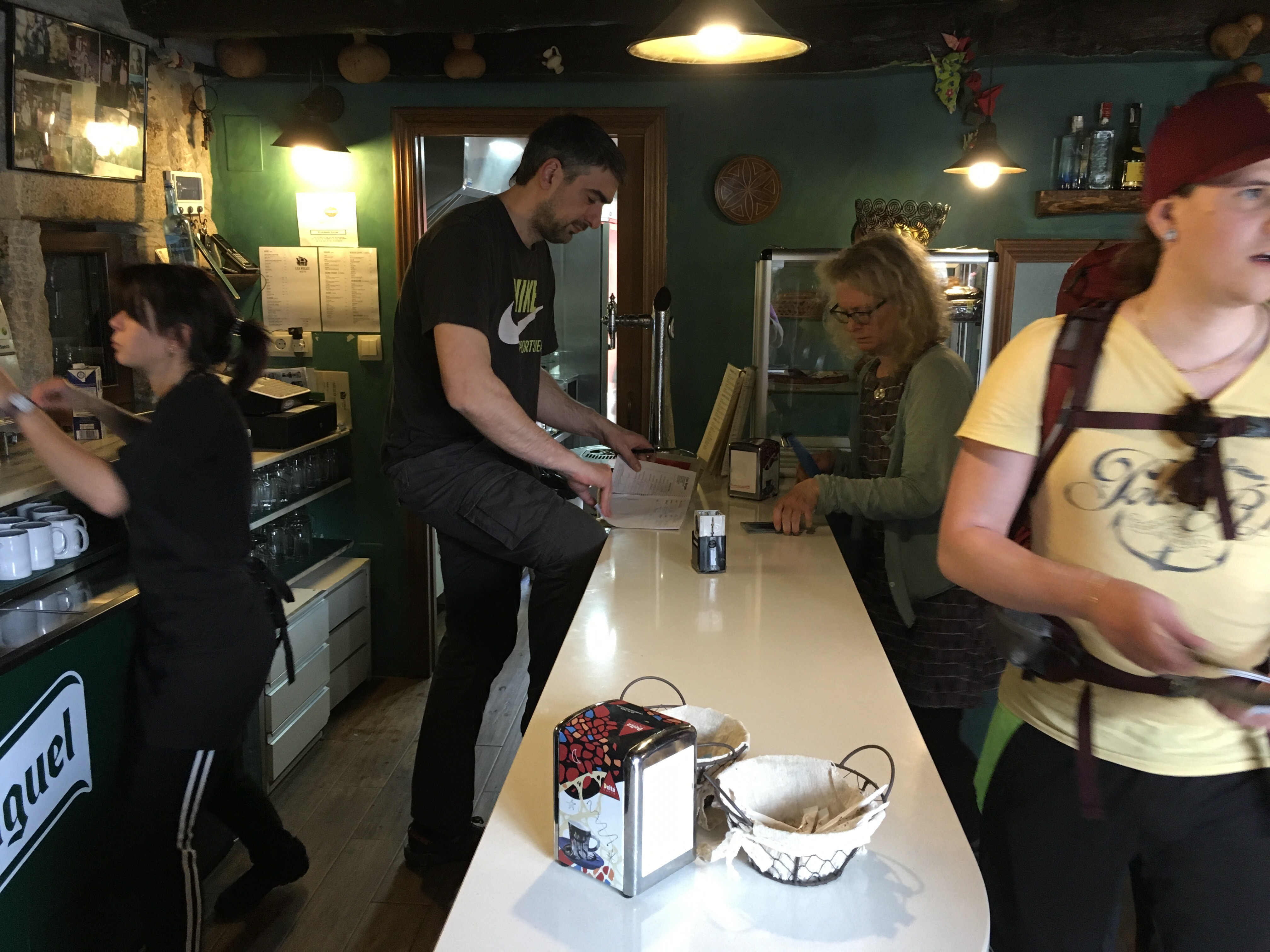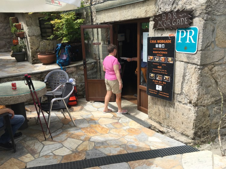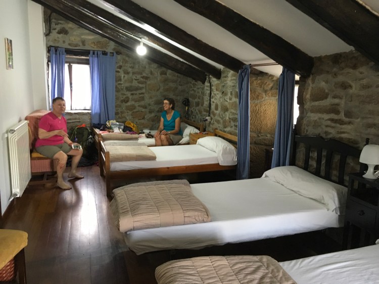 This is Paco … he is one of the 4 people who live in Morgade. He runs the Albergue which his family owns and he works so hard. His English is excellent. He was overwhelmed with the herds of Camino people that came in on Sunday. He said Saturday and Sunday were wild with a record breaking number of people. When we arrived, the place was rockin’. They had Irish musician playing in one of the rooms and the place was packed. We felt so lucky that we could go upstairs and lay down until all the commotion settled down around 3-4 pm.