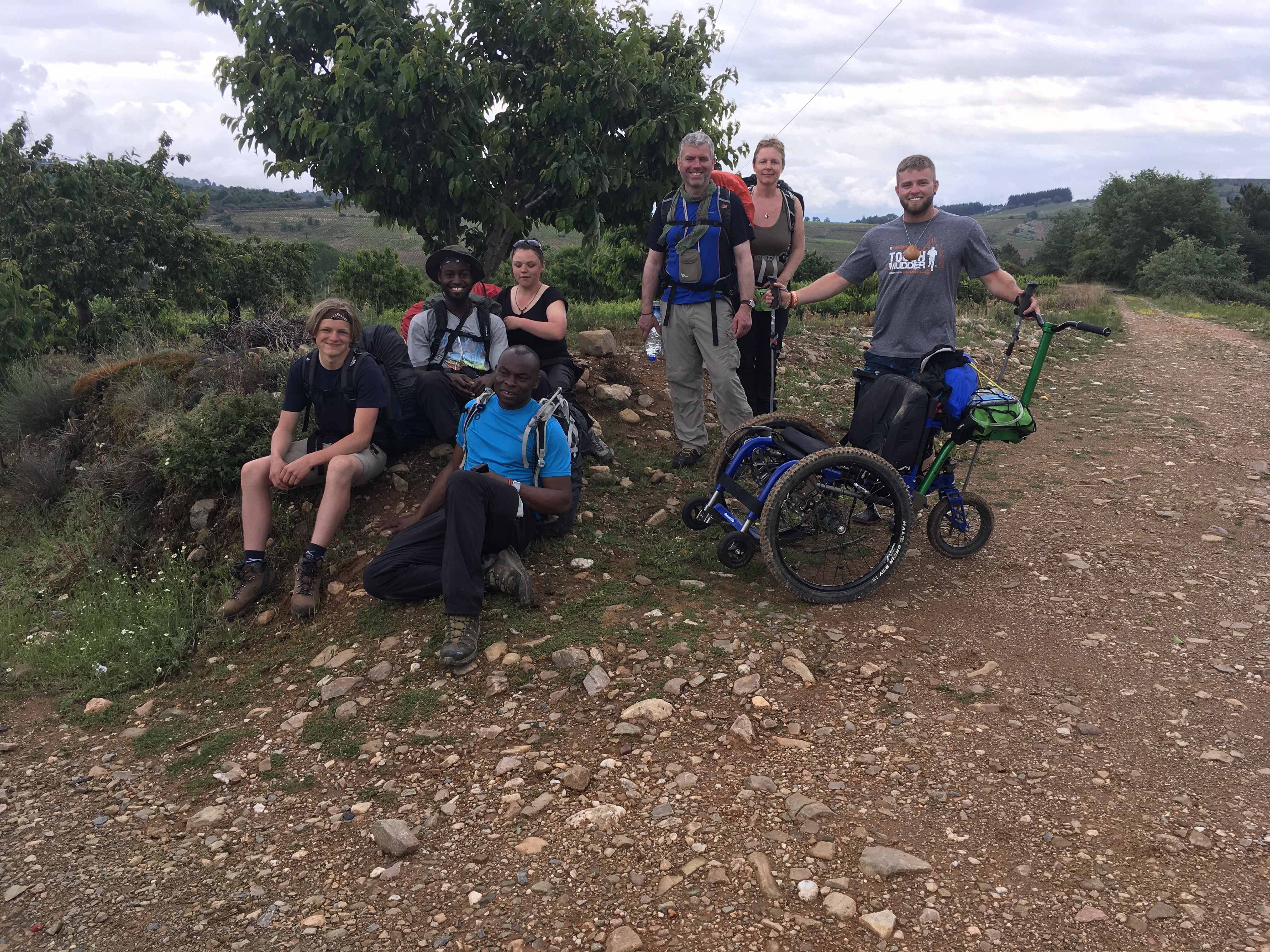 On the Camino we meet many people from all over the world. These people are from southern England. The guy on the far right’s name is PegLeg. He is a para-Olympian and even though he is missing part of one leg, he is able to do the Camino. Some times he rides in his chair and pushes with his arms. He is very strong and courageous.