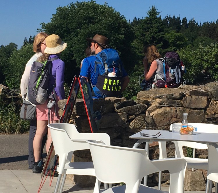 We stopped for breakfast. Noticed that there is a deaf blind person walking the Camino.