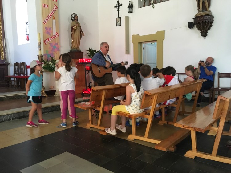 We stopped in a church and the priest was singing with the kids. The song — universal — “If you’re happy and you know it …” in Spanish.