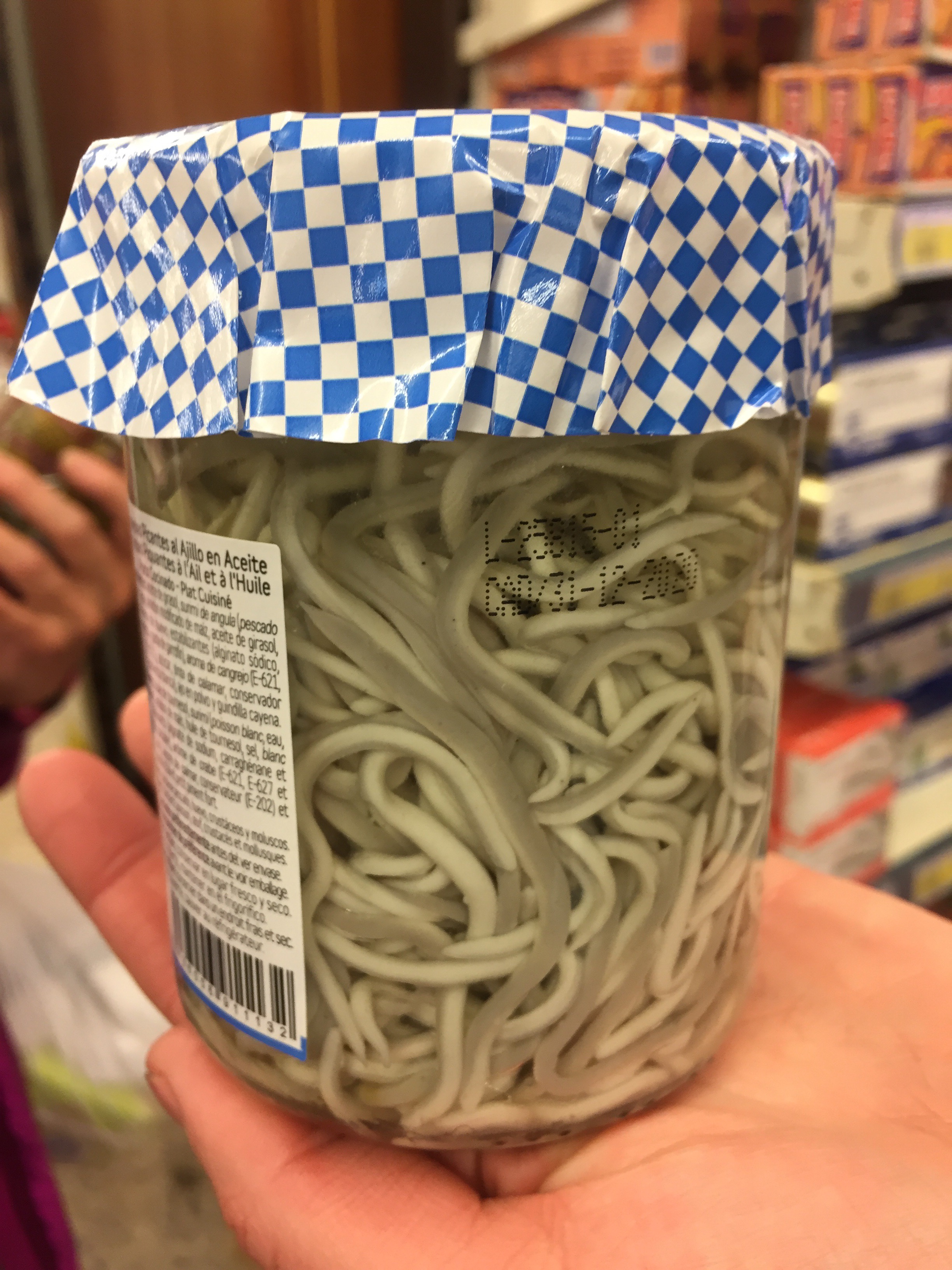 These are baby eels. It would be interesting to try. If they didn’t taste very good, we could cover them with Ragú spaghetti sauce and put add a little Parmesan. What do you think??