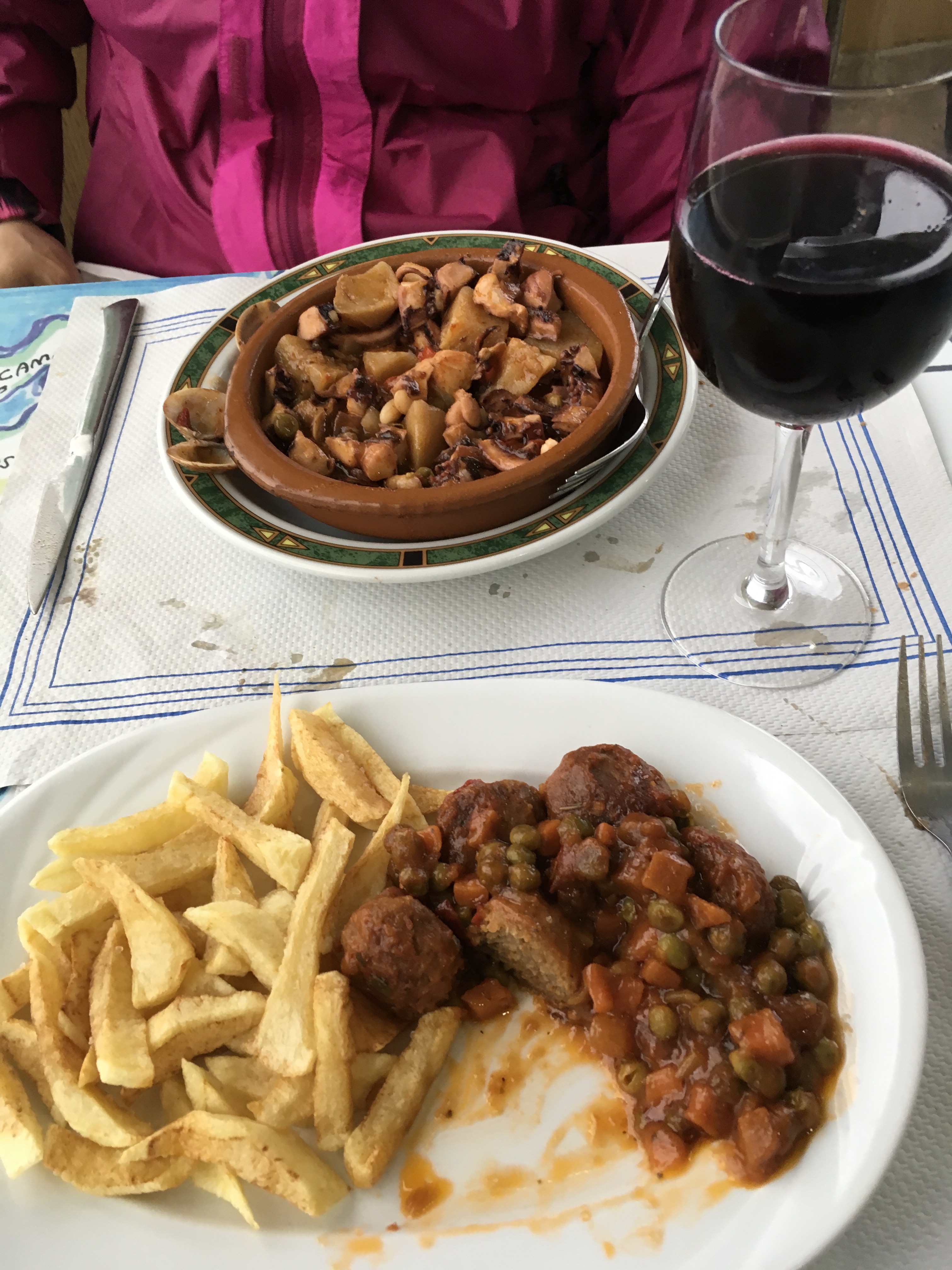 One last pilgrim’s meal — Octopus casserole and meatball casserole.