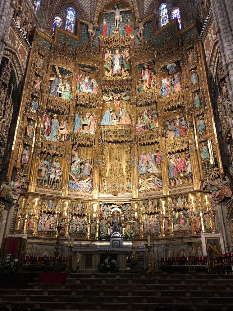 This sparkling gold reliefs of the “Retablo” in the Main Chapel and High Altar just behind the main altar. This huge altar piece stretches to the ceiling.