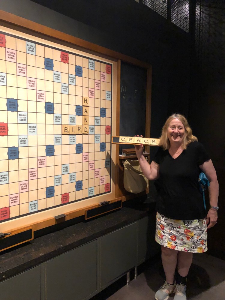 We loved the cocktail lounge … especially the wall-size scrabble board. There is a billiard room and just about every board game imaginable.