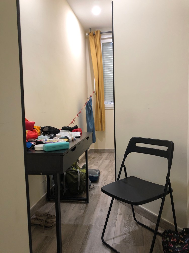 Just to the left of my bed was a weird little hallway that led to nothing but a window that faced a gloomy brick interior courtyard. The weird hallway was useful for organizing.