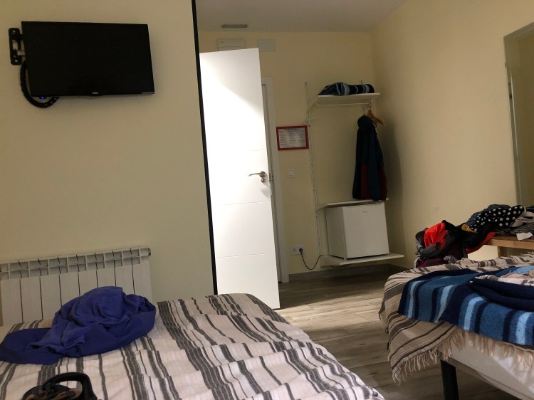 Took the Metro from the airport to Puerto del Sol. A little bit of confusion at airport because Metro was under reconstruction. Found our way to the JQC Rooms. Great location but we had to hike up five flights of stairs. Room is an odd shape but very clean and with a newly remodeled bathroom. Beds with memory foam mattresses were comfortable and we tested them out real quick. Spent most of the afternoon sleeping.