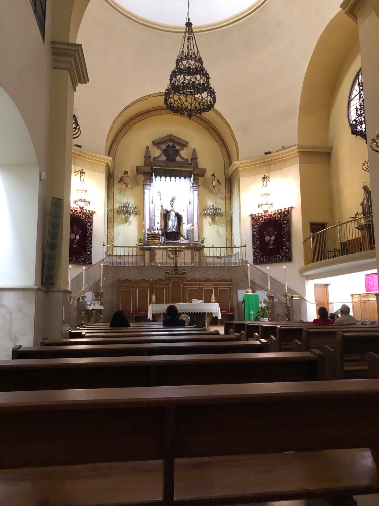 This is the Church of Salvador and Nicholas. Inside there was a handful of people, mostly old and mostly women praying the rosary out loud in Spanish.