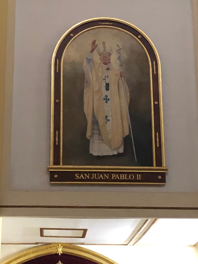 This congregation gave a nod to Pope John Paul II with a bigger than life portrait over a small chapel.