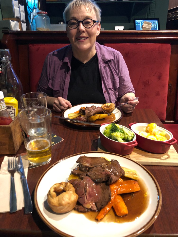 This was our first meal since boarding the plane in Minneapolis on Saturday morning. The roast beef dinner hit the spot.