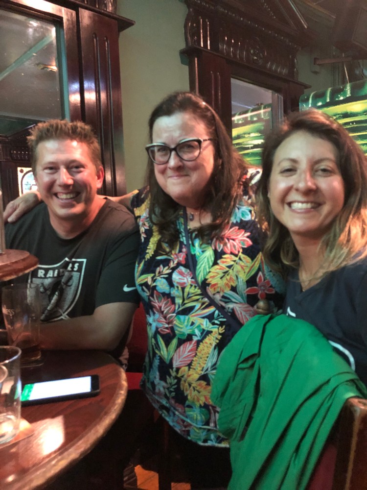 Well that was all very exciting. I’m not much of a cycling fan but this was exhilarating to watch. We continued plowing through crowds to reach our Irish pub destination. Every so often the peloton would fly by.