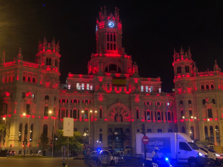 Ok, we saw the group of riders go through. Why isn’t anyone leaving??? It’s because they do nine 5.8K laps around one of the most prestigious venues in Madrid, specifically the one we were walking down to reach our Irish Pub destination.