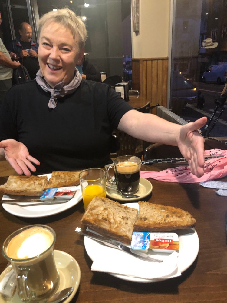 We had a quick breakfast of coffee and toast. The cost is 2 euro which is just a little bit more than $2.