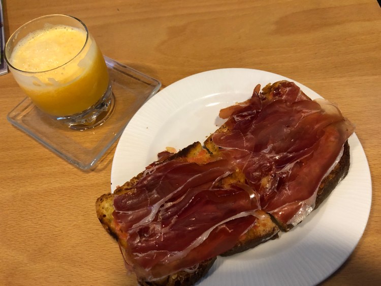Today’s breakfast is very thinly sliced ham on toast.