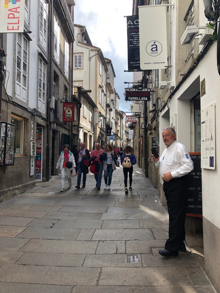 I could tell I was getting close to Santiago because the markers were vandalized. No directional arrow and no distance indicated. People like to take these for souvenirs even though you could buy replica’s in many of the souvenir shops.