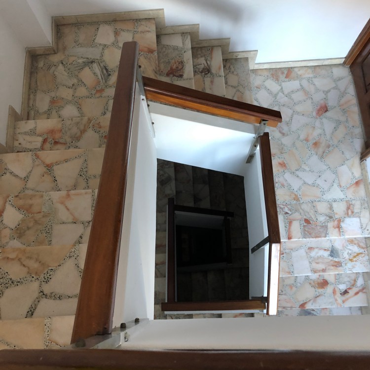 … exactly five floors above it. The staircase shown here was made of stone. Terry said a kind woman she met in the bar carried her backpack up the stairs for her.