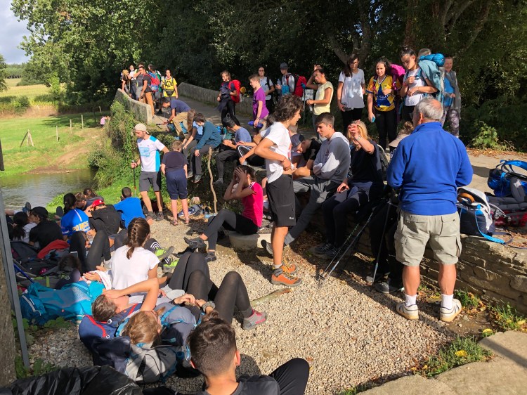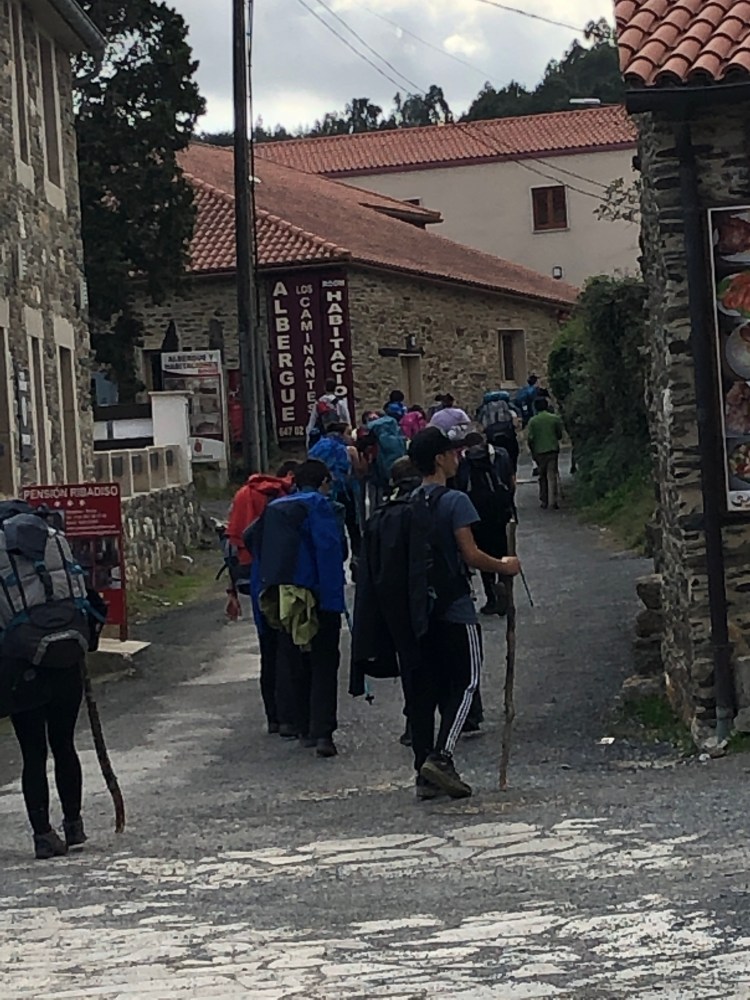 It was a beautiful day, warm and sunny. The Camino Frances is more crowded than ever. It is a highway of people coming through. We were just on Camino Ingles and saw a few people during the day but nothing like this. This is one of the school groups that came through.