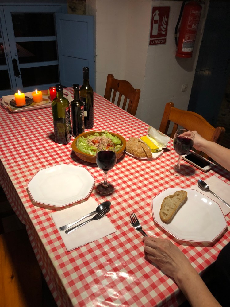It was hard to figure out meals that we could cook in the cottage. The weeks menu included bacon, eggs and toast for breakfast, spaghetti, pork chops, chicken, rice, homemade soup and salad mixta for dinners. We had a few tapa items, cheese made in Arzua, pate, hard sausage, crackers and wine.
