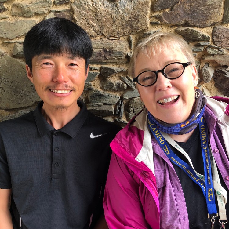 First Person to Arrive Today is: Ton Bae Lee from South Korea. His English is very good. It seems like all the pilgrims who arrived at the Albuergue today know Ton Bae. A large group of Spaniards that looked like a soccer team came through and they were all very happy to see him. He is a very likable person. He spent some time on Terry’s Therapy bench.