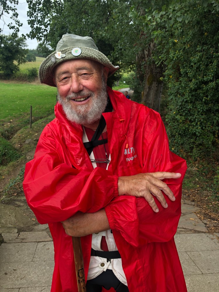 Pilgrim of the Day: Luis from France This is one of the most amazing people I’ve ever met on the Camino in the last three years. He is 76 years old and recently retired. He owned a financial services company and sold it just before walking the camino. Luis said he started out as a tourist. Then he became a trekker. And now he has been converted into a pilgrim. He has amazing stories to tell and a very insightful perspective on youth, religion, spirituality and politics. Luis has been walking for 12 weeks. He started in Le Puy, France, which is about 1000K (600 miles) to Santiago. After Luis finishes the Camino Frances in two days, he will join his wife in Luxembourg where they will live.