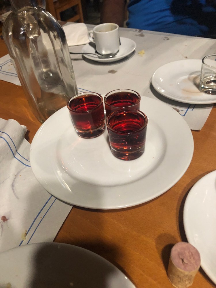 Our lovable local, Alfonso the waiter, brought over a bottle of something called Zoco. Many shots were being poured and toasts of friendship were being made.