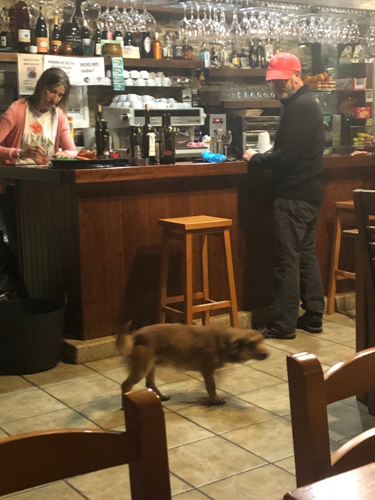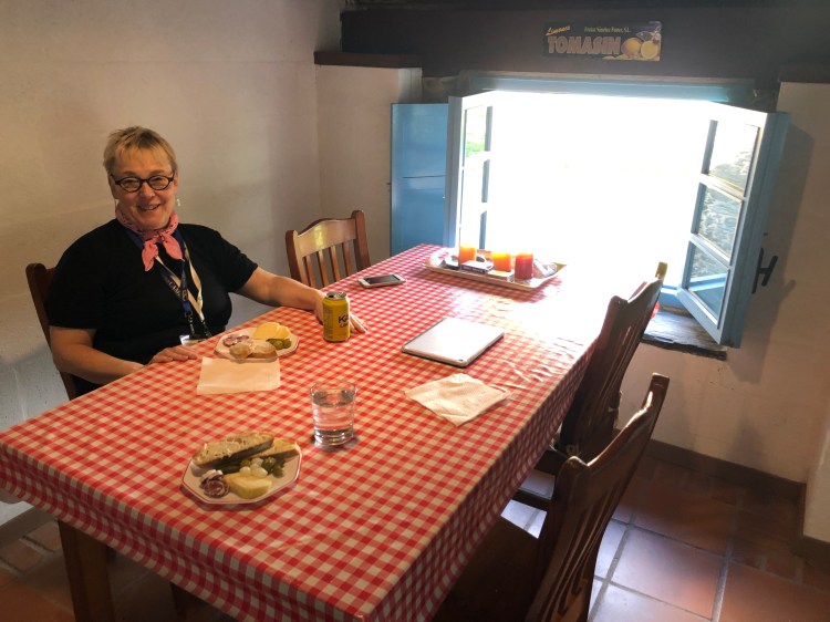 In the morning, I usually go over to Meson Rural (bar and restaurant next door) to catch up on emails and to blog. They have very good WiFi. Terry has T-Mobile with cellular coverage just about everywhere in Spain. She stays at the cottage. She has a leisurely breakfast, showers, elevates her foot, reads and watches the foot traffic on the bridge from the cottage window.