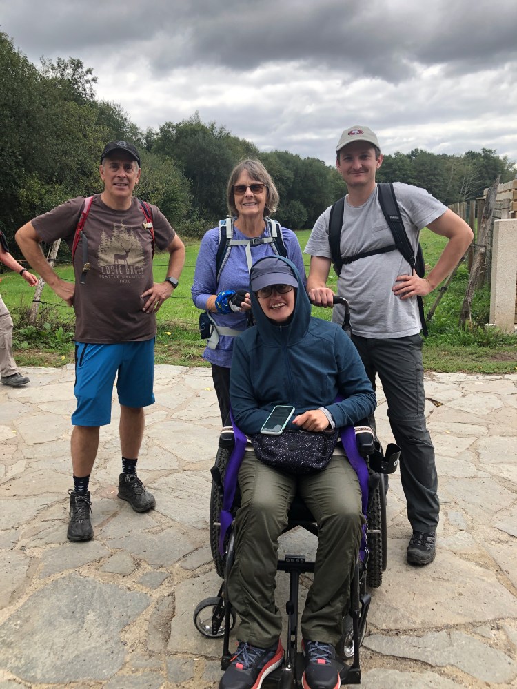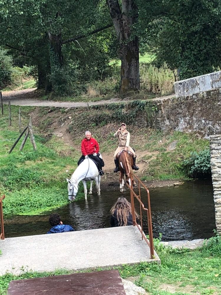Today a group from “I’ll Push You“, came through. This is Caitlin from Reno. She is accompanied by her mother Kathy and her brother Brett from Texas. The man on the right is Craig, a volunteer from I’ll Push You. They call him the mule. I think he does a lot of the pushing. The entire group of about 40 started in Sarria which is 100K from Santiago. A bus transports them back to Santiago every night where there are facilities that can accommodate them. Our albuergue does have a handicap facility. It is a separate building that has four beds and is handicap accessible.
