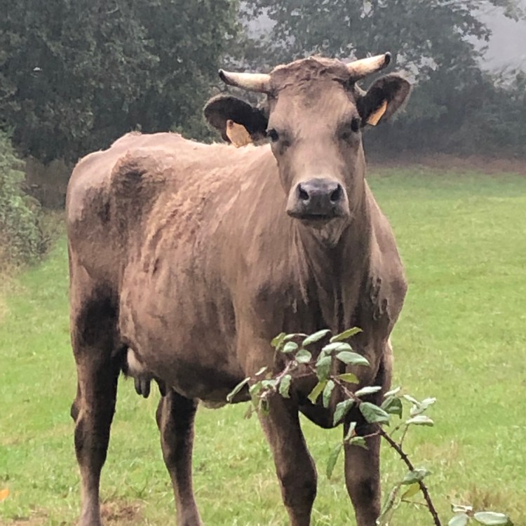 Loveable Local: Bernadette: Farmer Alfonso walks his gals to the pasture everyday. Bernadette is an independent thinker. On the way to the pasture, she will stop by the Pension and inspect the parking lot. When she feels like it she will return to her peeps and continue on to the pasture.