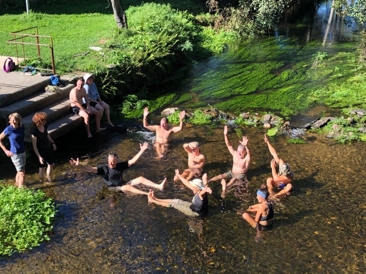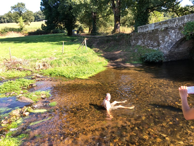 Before you know it, everyone is in the water. Most of these people are from different countries and are camino acquaintances. Later that evening I saw many of them again at Meson Rural. They wanted to have dinner together and the party continued.