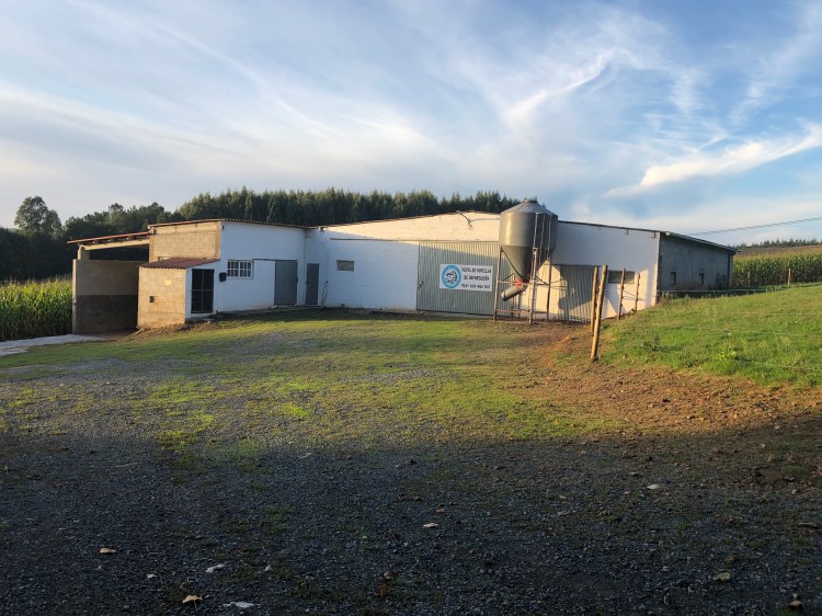 I’m not sure what this building is but the sign translates as “Sale of Imported Heifers” and I have seen Holstein cows hanging around.