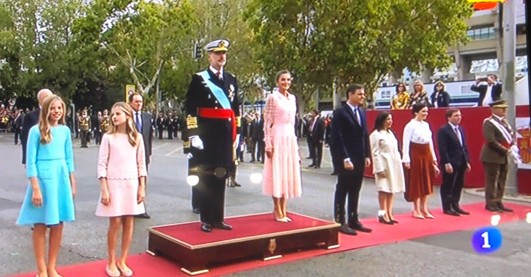 The next thing that came on TV was the royal family of Spain; King Phillippi the 6th with Queen Letzia and daughters Leonor and Sonja. They took their seats in a special viewing station on the parade route.