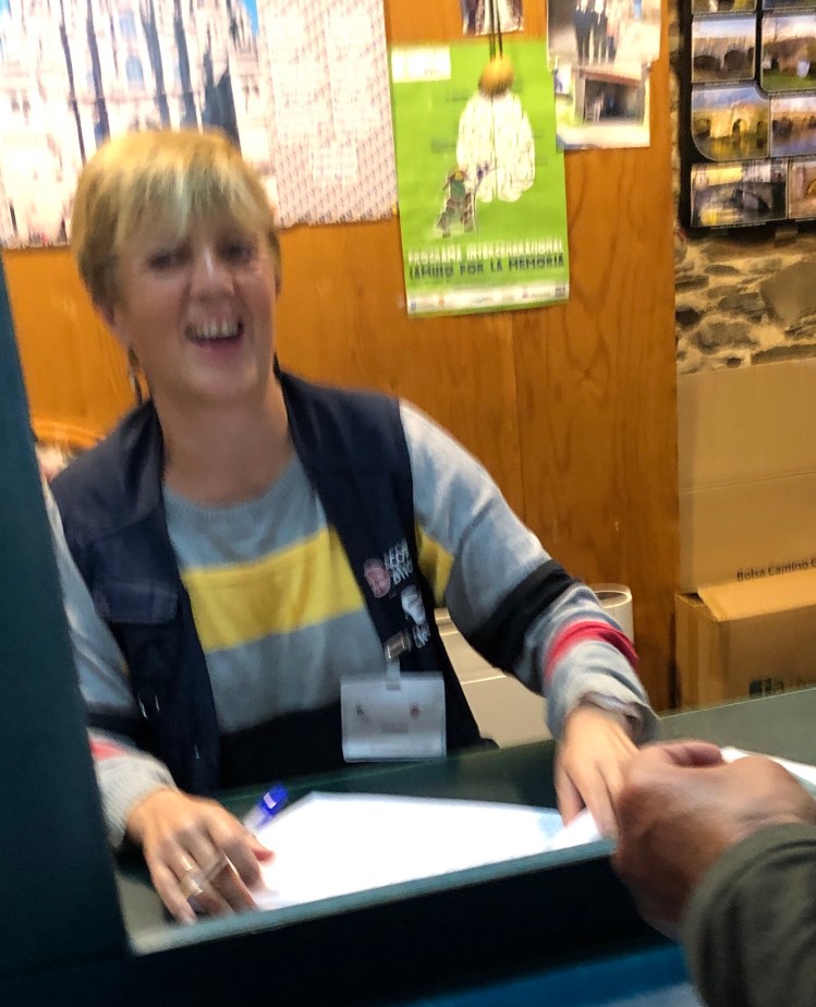 Loveable Local: Maricarmen — Maricarmen is Galician and lives nearby in Arzua. She works for the Galician government as an Albuerguesa at our municipal albuergue. She alternates days with Ana, the other Albuerguesa. She speaks a few words in English but most of the time it’s “no comprende.” Her husband is a baker. She often brings us bread, eggs and tomatoes from their garden.