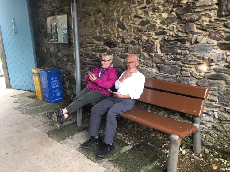 Terry’s Bench also helps with travel arrangements. This gent from the United Kingdom was going to walk the Frances with a friend and his son. The wife became seriously ill and the friend and son cancelled at the last minute. He decided to walk it alone. He made it this far with no problems but needed help making arrangements to stay in Santiago.