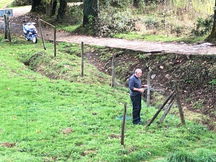 Farmer Alfonso is finally fixing the fence so the cows can’t escape.